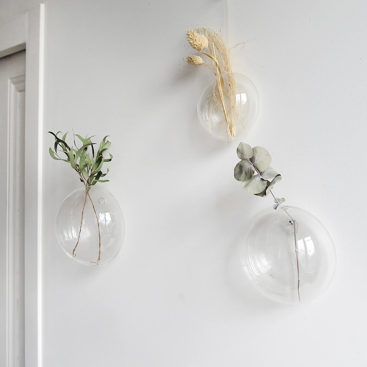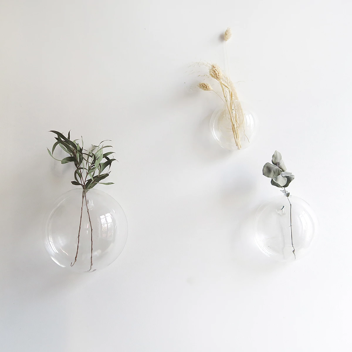 These 3 glass wall flowerpot, pampas grass decorate your wall. You can create your composition however you want. 1 small nail is required. The installation is very fast. You can put dried flowers for a trendy decoration. (Pampa grass…). You can also fill the pot with water.