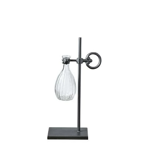 amp; Bulbous Olivia vase with stand Useful vase for around the house. Inspired by the science lab. Product size: L17xW10xH32 cm Material: Glass, metal Colour: Clear