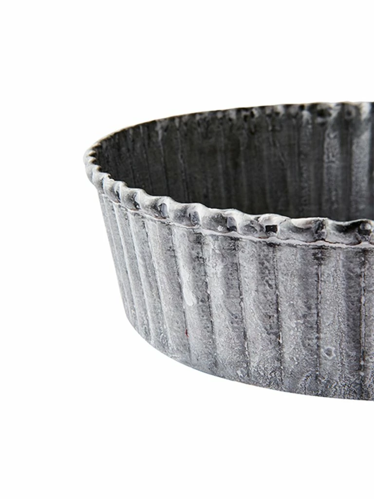The Affari Fenix Tray is a decorative item crafted from galvanised iron. Featuring a white washed surface, this rustic, circular tray has fluted edges. It can be used as a centre piece on a table, a serving tray in the kitchen, or propped against a wall as decoration. Due to the nature of the material, the tray will continue to patina over time. This is considered part of it’s charm, but it should be noted that some colour run onto permeable surfaces may occur. Available in a variety of sizes and shapes. Galvanised iron Grey with antique whitewash finish D: 14 x H: 4 cm Decorative item, not for use in oven Will continue to patina over time