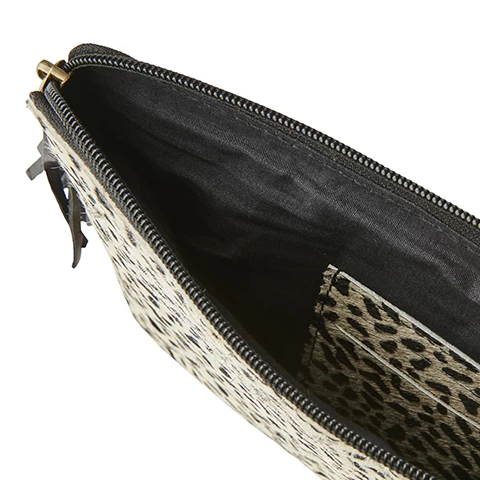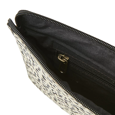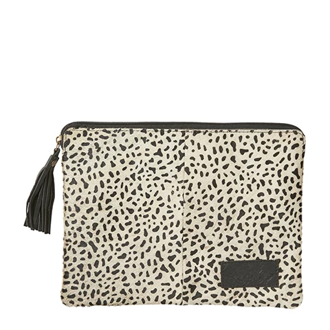 This product in made of certified cow leather. No harmful chemicals are used. The pattern on the cow hide is printed on the natural color. W 28 x H 21 cm.