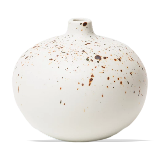 With its speckled eggshell surface and soft, earthy tones, Bari Vase Freckles Melange from Lindform captures the natural, organic quality and nature-inspired themes so beloved by Nordic designers.