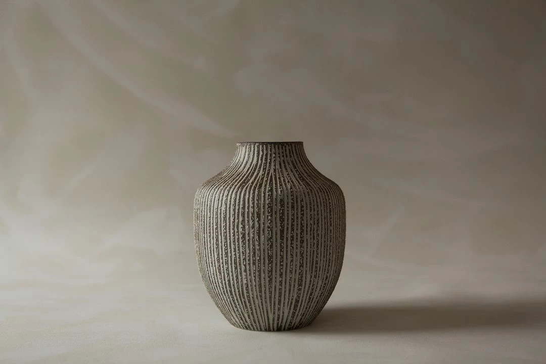 With its lightly furrowed surface and speckled earthy detail, the Kyoto Vase in stone stripe from Lindform captures a natural, organic quality and nature-inspired theme so often beloved by Nordic designers. Kyoto makes a discrete statement and a fine addition to Lindform’s range of hand-made ceramics, looking wonderful grouped alongside other shapes and shades from the range, but sitting equally well alone.