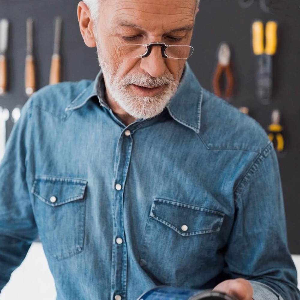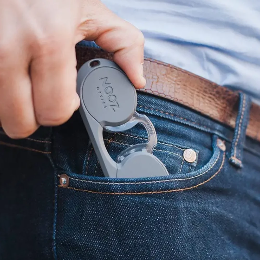 These innovative armless reading glasses from the French brand Nooz Optics will be your everyday companion. Handy, compact and hard-wearing, they slip easily into your bag, pocket or attaches to your keyring.