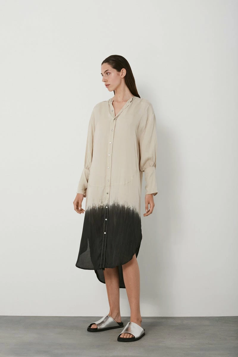Make a statement in Amila, the hand-dyed sunrise shirt dress.