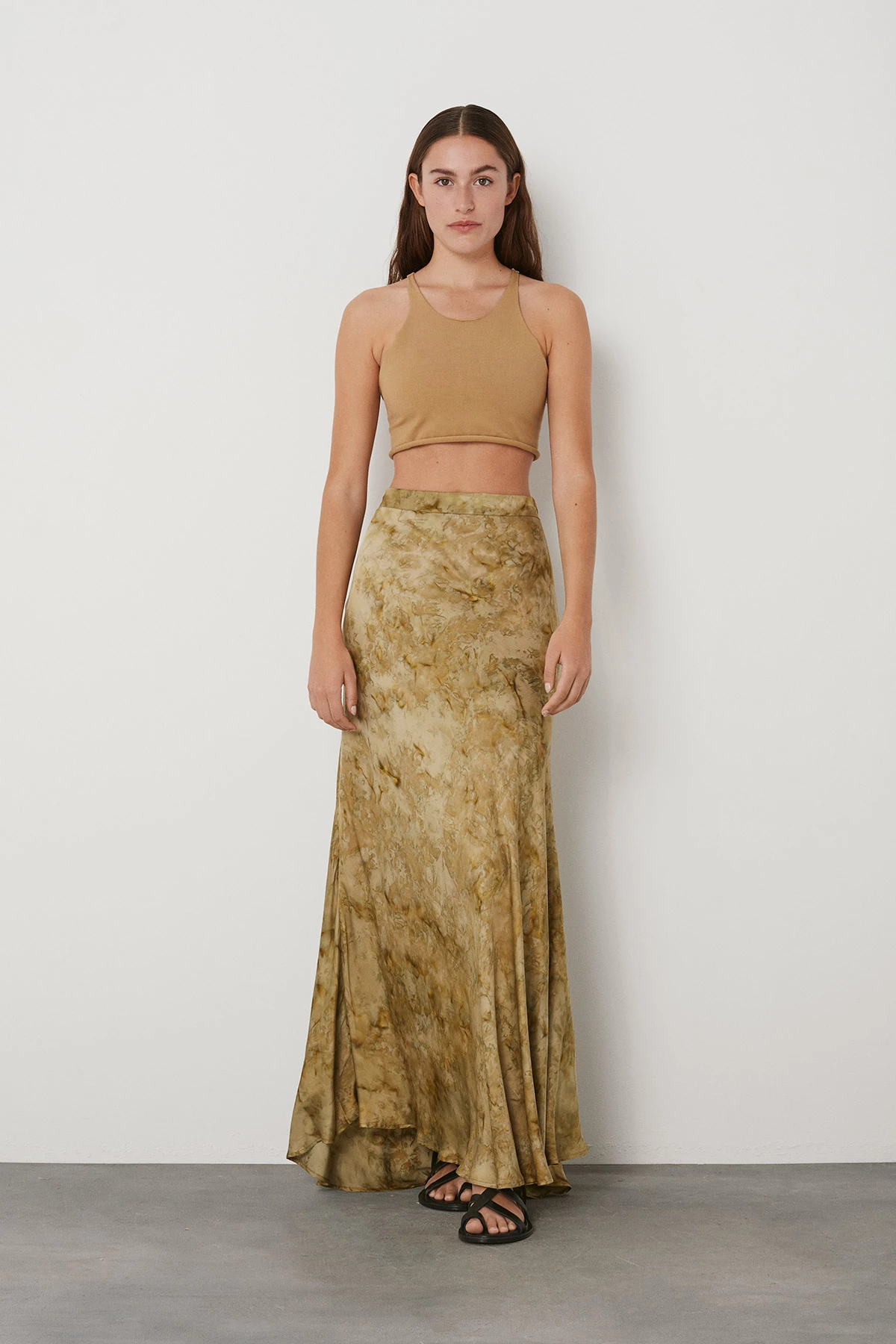 Defined by a dazzling handmade tie dye pattern, each Soleil Whispy Bias Skirt stands out.
